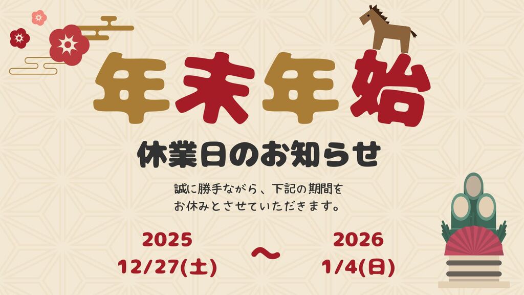 (年末年始の休業期間はお問い合わせの返信が遅れてしまう場合がございますのでご了承ください。)